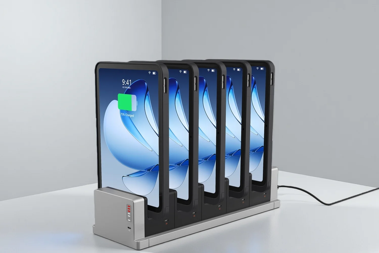 Retail stores often rely on multiple tablets throughout the day. Using individual chargers and loose cables can lead to unstable charging, cluttered counters, and device downtime.