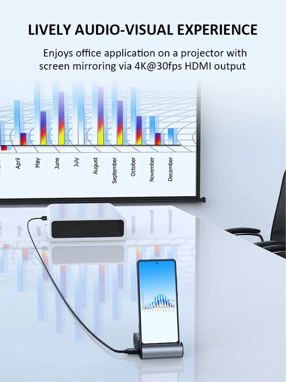 The Foldable Desktop Docking Station for iPhone 15 combines elegant design with advanced functionality. It features 4K HDMI display output, USB 3.0 high-speed data transfer, TF/SD card slots, and fast charging support — all integrated in a compact, foldable stand that enhances workspace efficiency.