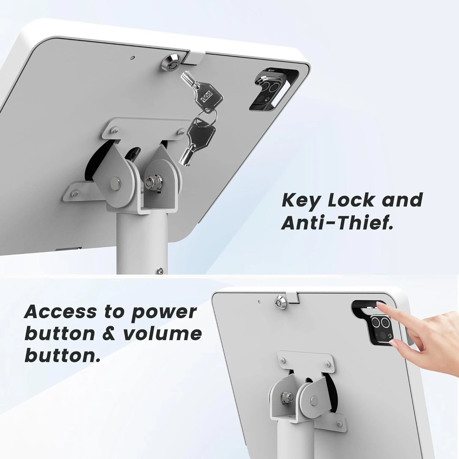 The Goochain Tablet Stand Kiosk with Security Lock is a commercial-grade anti-theft iPad enclosure designed for retail stores, restaurants, exhibitions, public facilities, and corporate environments. Built with high-strength metal, a tamper-proof locking system, and flexible mounting options, this kiosk stand offers durable security and professional display for 10.9" and 11" iPad models.