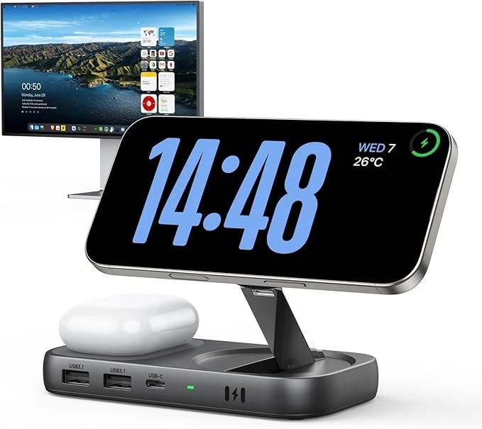 Docagem de espelhamento dobrável para iPhone: Transforme seu iPhone em uma segunda tela para multitarefa ou videoconferência.
